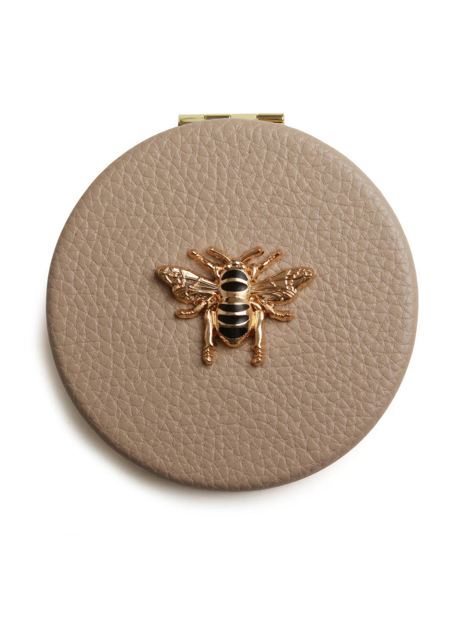 Refine your daily beauty routine with the ALICE WHEELER AW5819 Stone Round Compact Mirror. From Alice Wheeler London, this elegant compact is finished in soft vegan leather and detailed with the iconic gold honey bee emblem. The dual-sided design offers a standard view alongside 3x magnification for precision touch-ups on the go. Lightweight and portable, it slips easily into your handbag or clutch, making it the perfect blend of luxury and practicality.