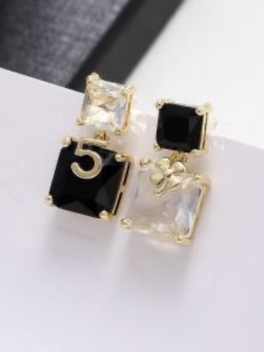 PCHA EUR575 Gold/Black Geometric No 5 Dangle Earrings