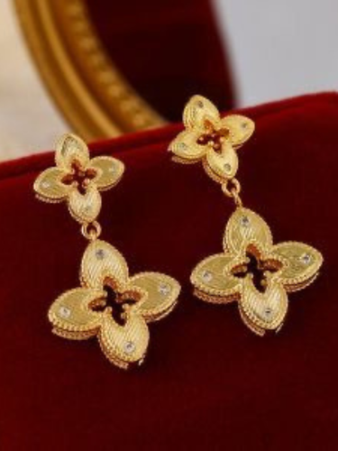 PCHA EUR574 Gold Four Petals Charm Drop Earrings