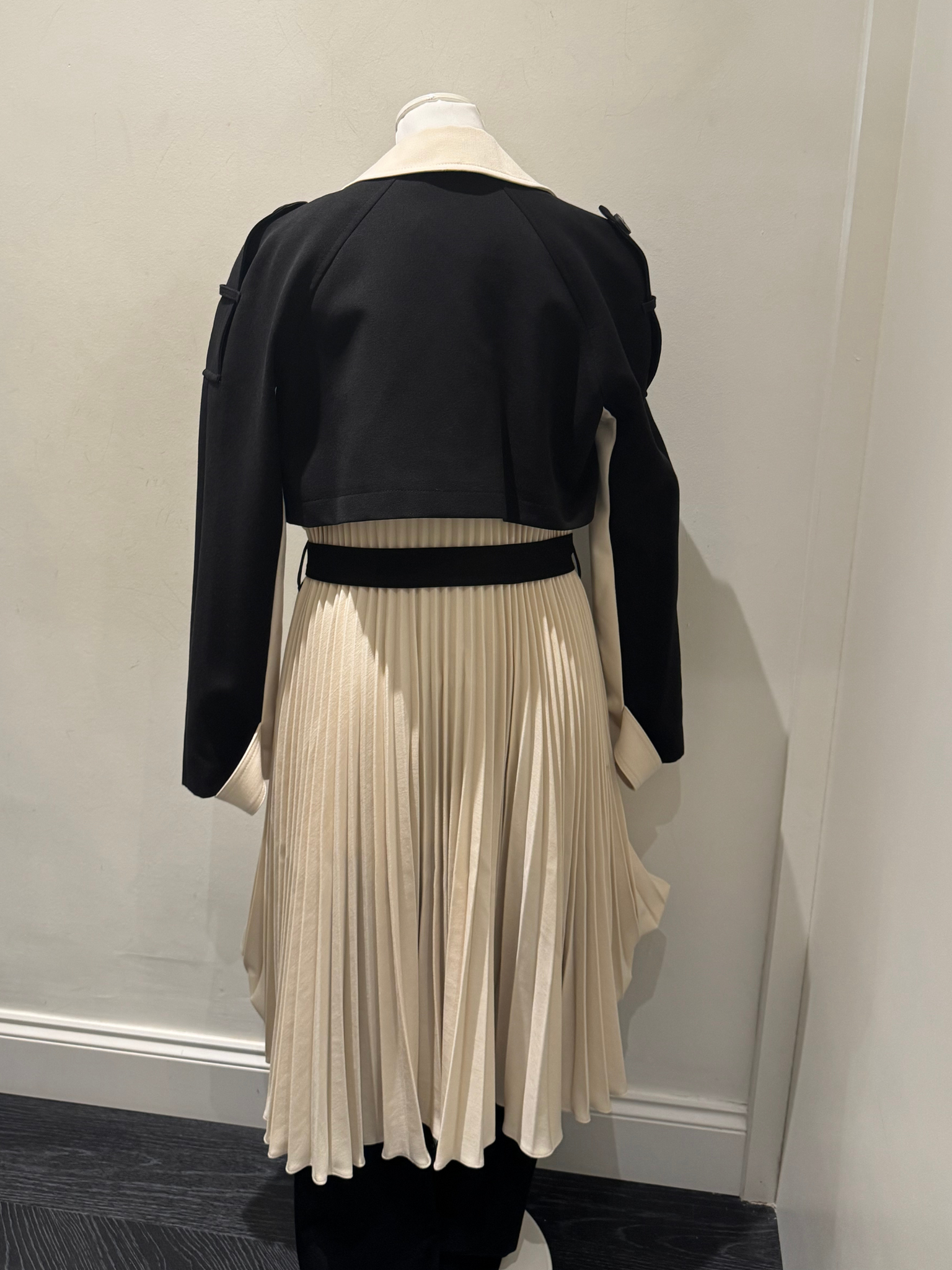 Redefine classic with this longline trench coat, designed in elegant cream and black panels for a modern twist on a timeless silhouette. With its sharp lapels, structured tailoring, and belted waist, this coat blends smart sophistication with standout style. A versatile layering piece, perfect for workwear, travel, or elevated everyday looks.
