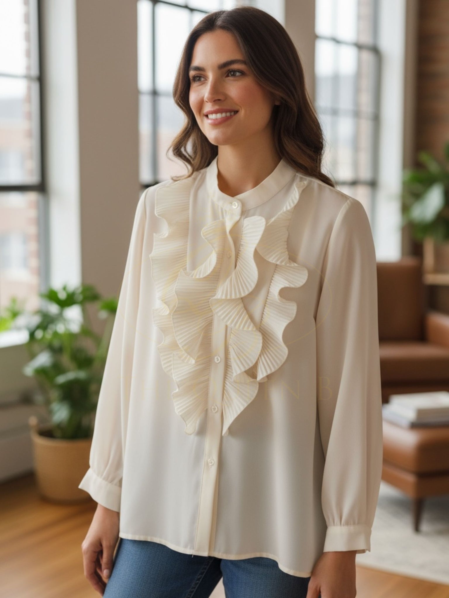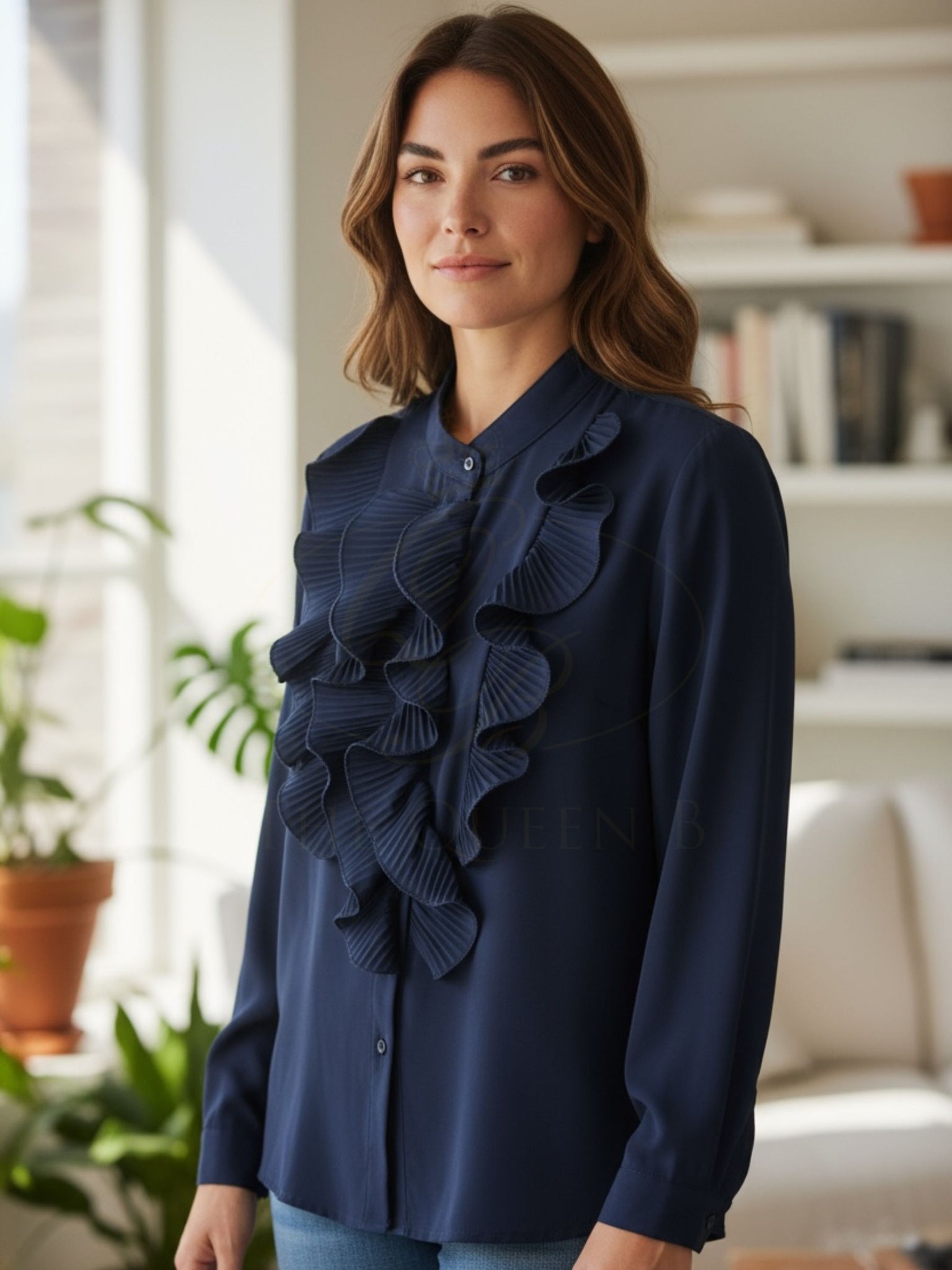 The QB RR Felicity Blouse is a timeless piece that blends elegance with everyday versatility. Cut in a relaxed silhouette, this free-size blouse (fits up to a UK 16) is detailed with cascading frills through the front, adding a feminine touch to its classic button-down design. Lightweight and easy to style, it’s the perfect choice for both polished daytime looks and elevated evening outfits.