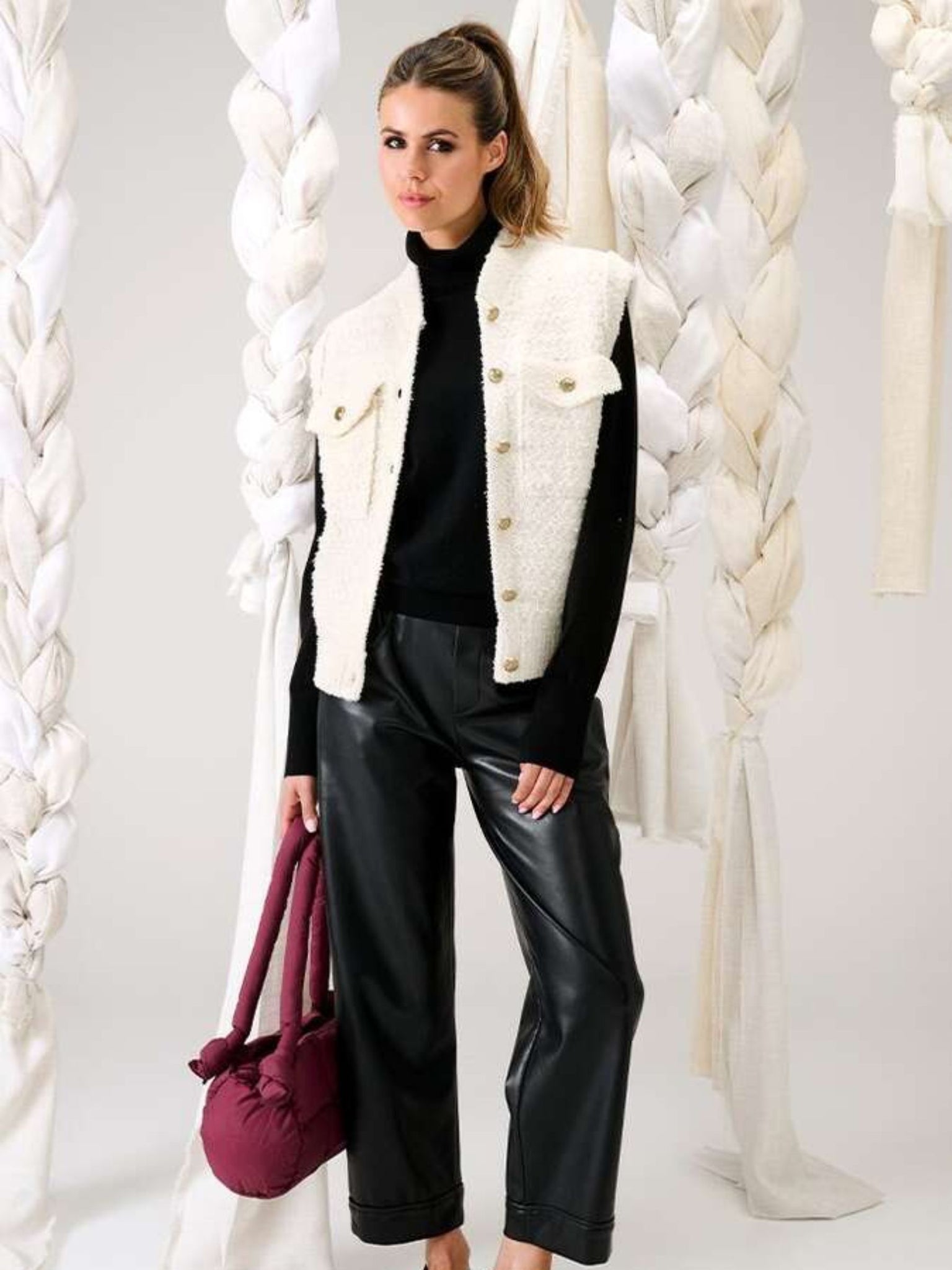 Elevate your wardrobe with the K Design B758 Vegan Leather Pants, a sleek and modern essential that brings effortless edge to any outfit. Crafted from high-quality vegan leather, these trousers combine contemporary style with everyday comfort. Designed in Belgium, they feature a flattering straight-leg cut with a relaxed fit and an elasticated waistband for ease of wear. The cropped ankle length with cuffed hems adds a chic finish, making them perfect for both smart and casual styling.