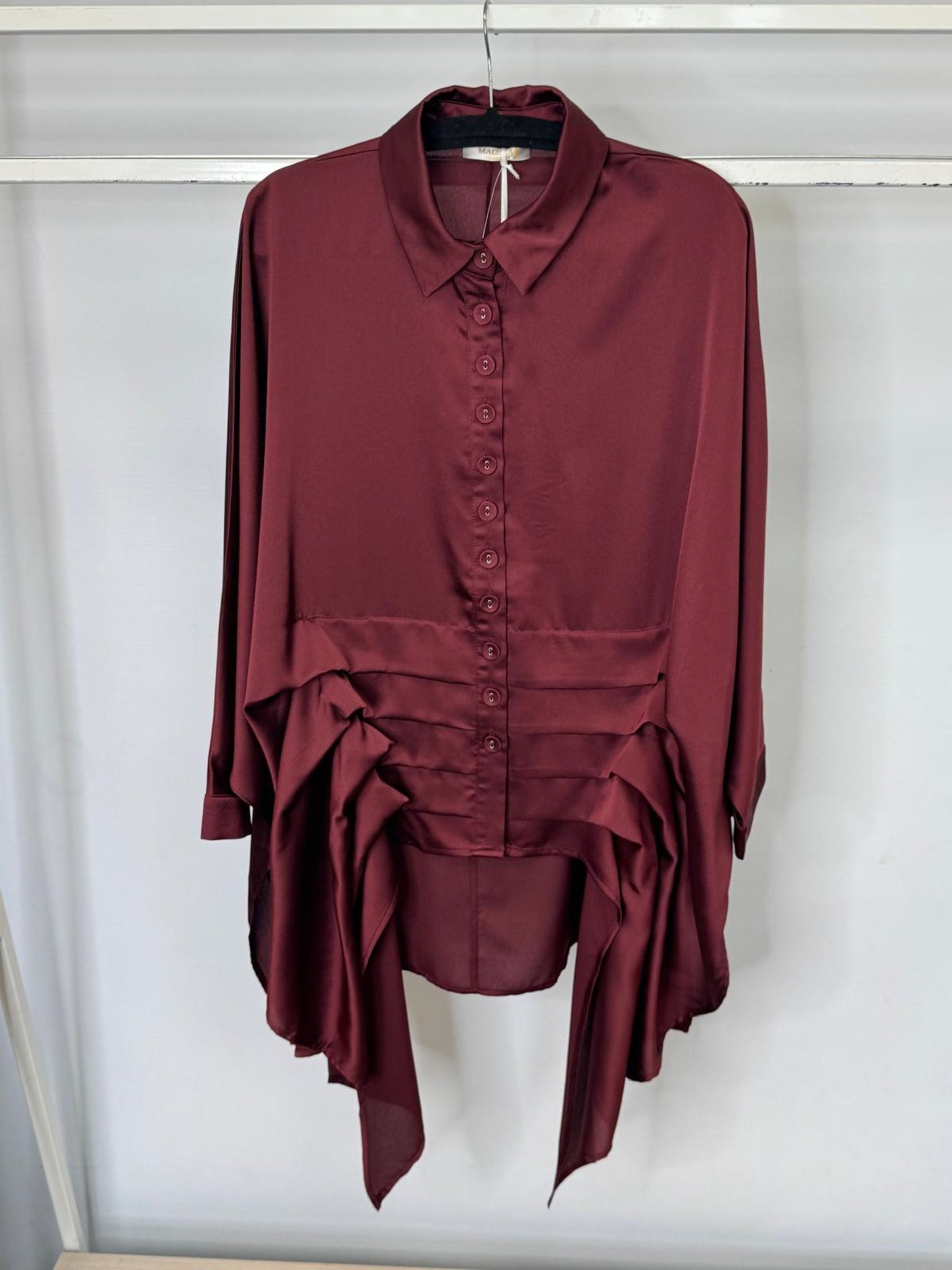 Oversized Woven Shirt with Pleat Detail is a contemporary statement piece that blends relaxed elegance with modern edge. Crafted from a smooth woven fabric, this oversized shirt features a flowing silhouette, classic button-down front and striking pleated detailing for added texture and movement. Designed in versatile wine, it’s a wardrobe essential for creating effortlessly chic day-to-night looks.