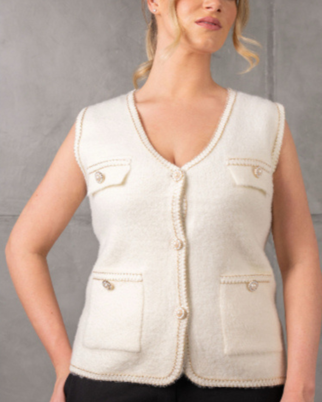 The PARAMOUR Design Waistcoat is a versatile wardrobe staple that brings elegant structure and modern flair to any ensemble. Crafted in a refined sleeveless silhouette, this hip-length waistcoat is perfect for layering over blouses or dresses for an effortlessly elevated finish. Designed for the style-conscious woman, it adds a sophisticated edge to both formal and casual outfits.