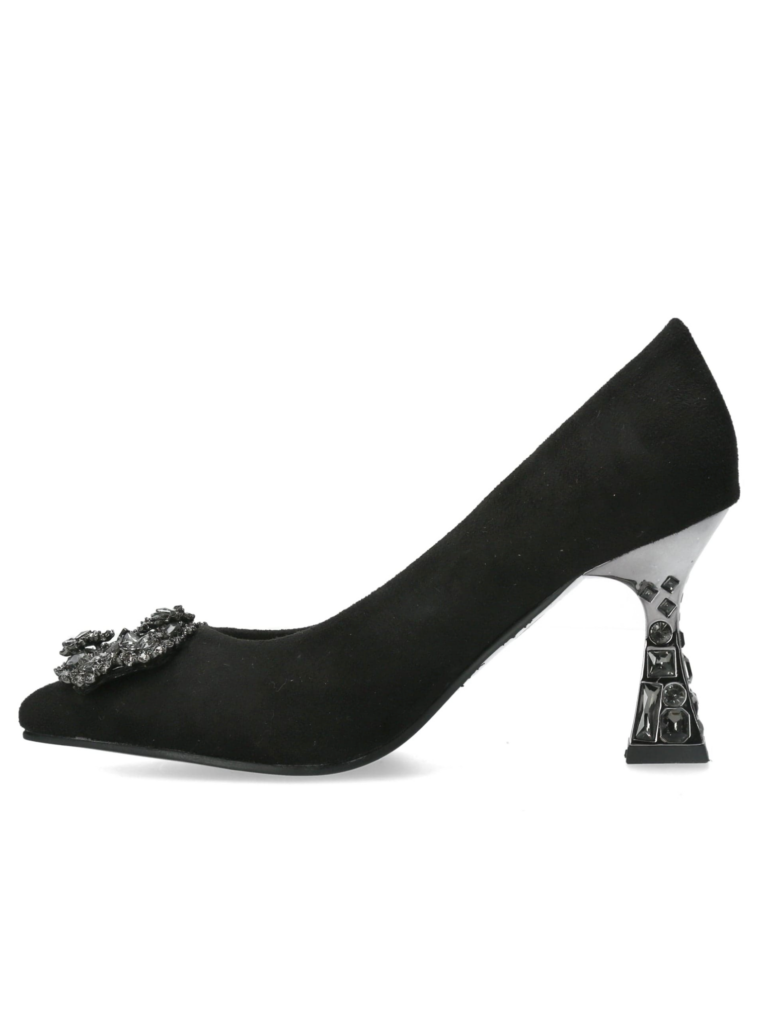 Misstyl Myriano 02 Noir Heel – black pointed-toe stiletto with jewel embellishment, elegant women’s dress heels with 7.5 cm sculpted heel.