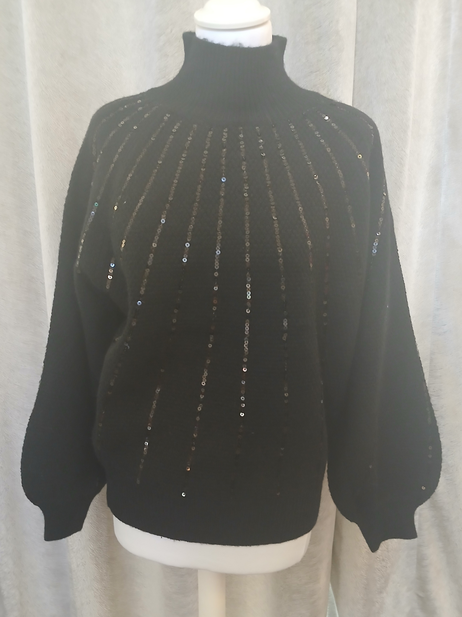PARAMOUR Sequin Polo 8061 – elegant knitted jumper with vertical sequin detailing and a high ribbed neckline, perfect for chic day-to-night styling.