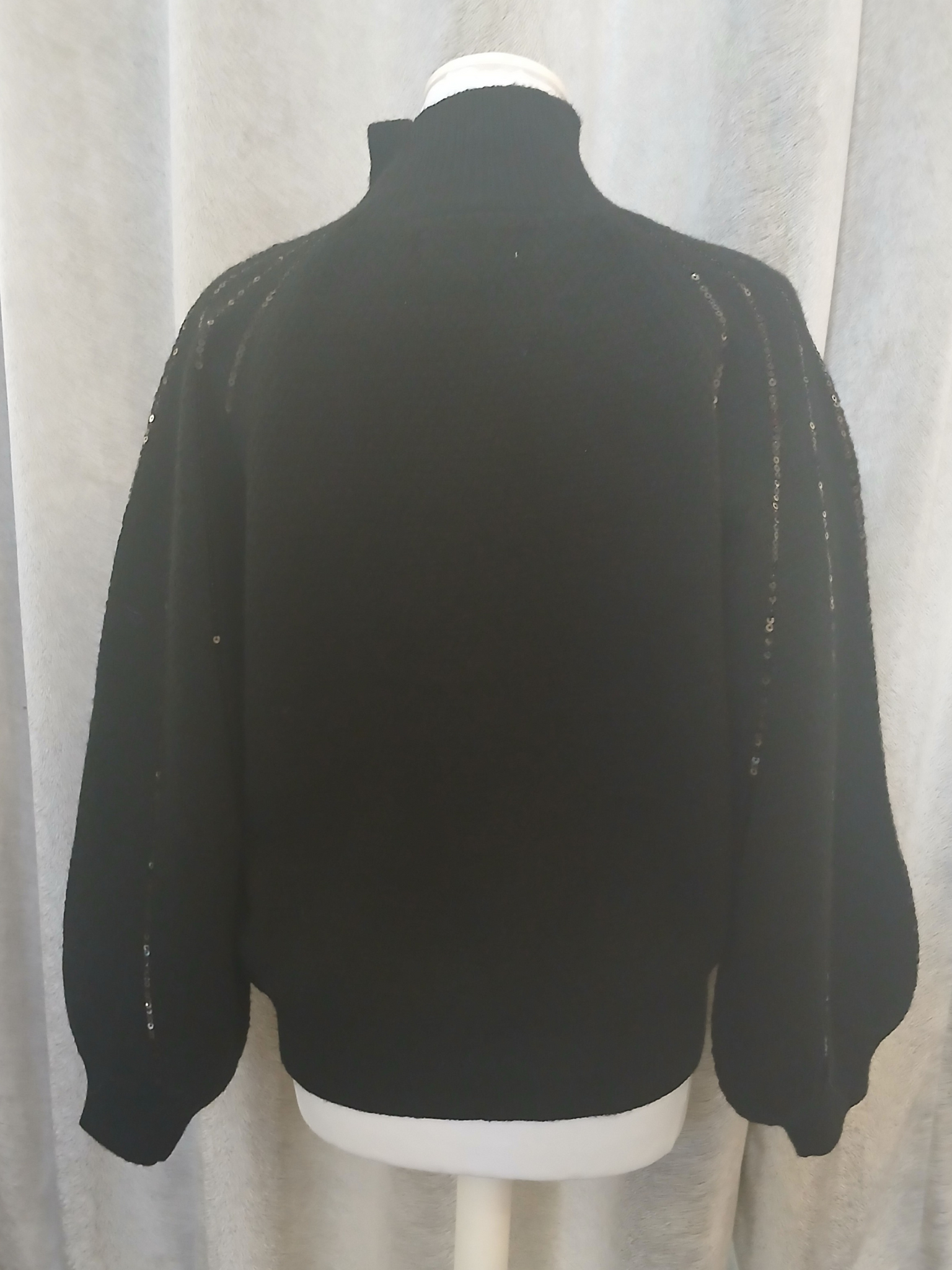 Step into shimmer and sophistication with the PARAMOUR Sequin Polo. Adorned with radiant sequin detailing from shoulder to hem, this knit top is crafted to light up your wardrobe. The high neck collar adds a classic touch, making it the perfect choice for effortlessly elegant dressing.
