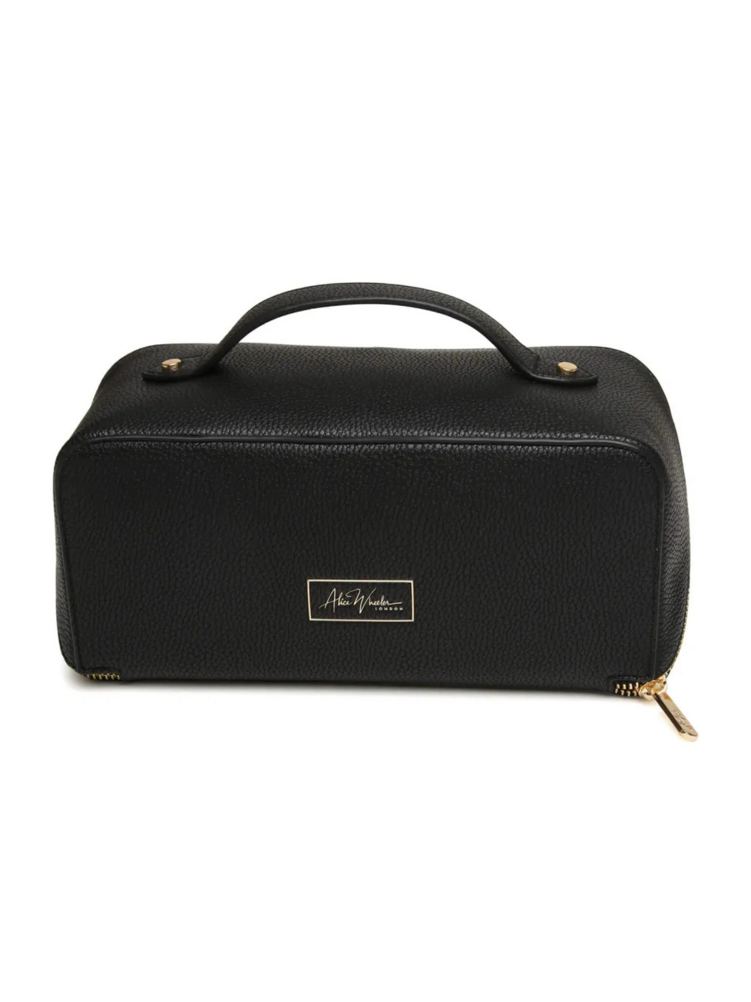 Step up your beauty organisation with the Alice Wheeler AW0252 Black Train Case S, a compact yet luxurious case designed for travel and everyday elegance. Crafted with a sleek silhouette, this case is finished with a gold-toned metal zip that combines sophistication with durability. Its smart, structured interior opens wide to reveal a fully lined compartment, complete with internal pockets to keep your essentials neatly organised. Perfectly sized for portability, it slips easily into your suitcase, overnight bag or vanity shelf while keeping your must-haves secure and stylish.