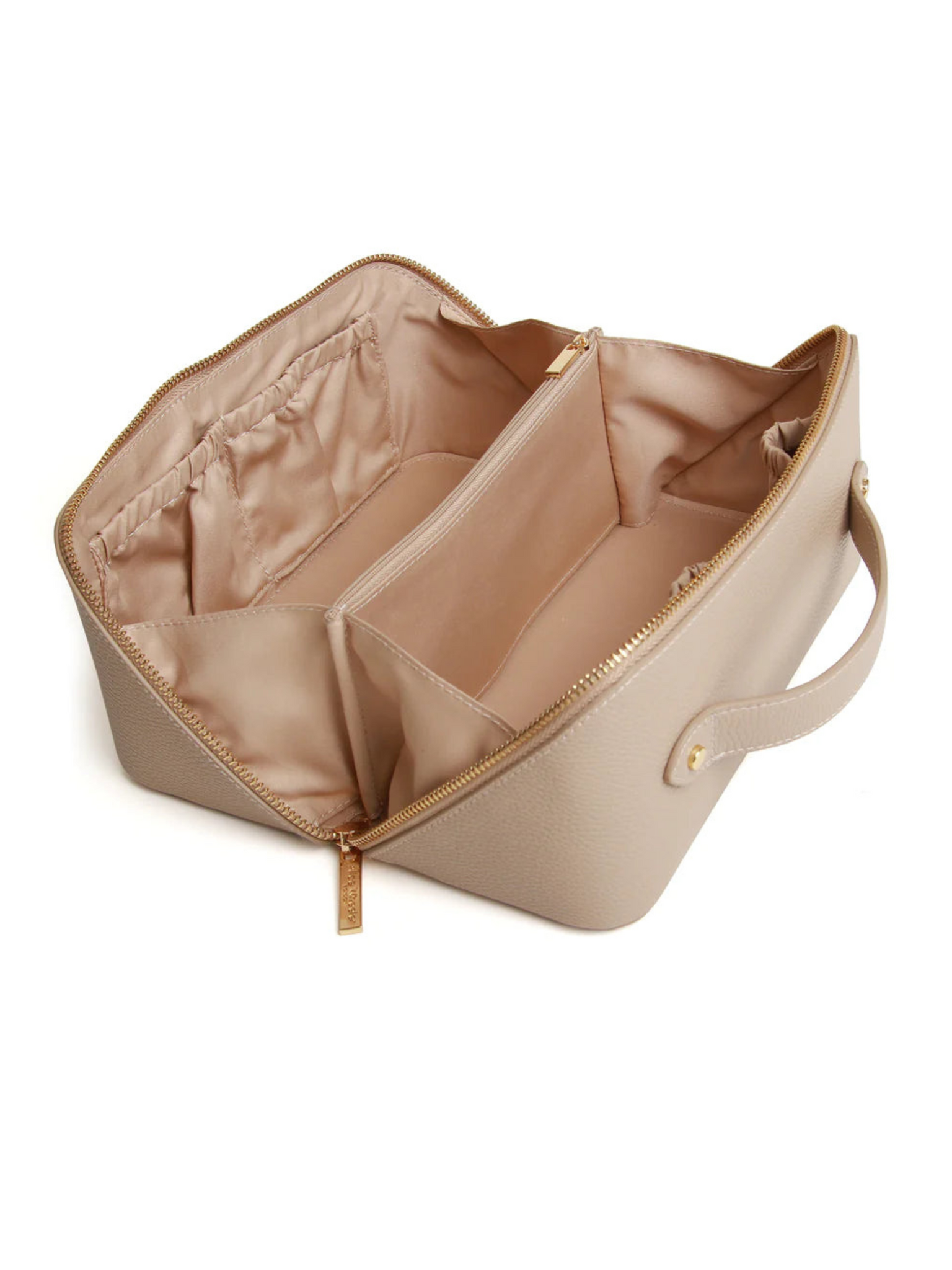 Step out in style and organisation with the Alice Wheeler AW0246 Stone Train Case M, a chic and practical accessory designed to keep your beauty essentials perfectly in place. Featuring a sleek silhouette with a gold-toned zip fastening, this case opens wide to reveal a generous, fully lined interior complete with handy internal pockets for effortless organisation. Both stylish and functional, it’s the ideal companion for home, travel or everyday use.