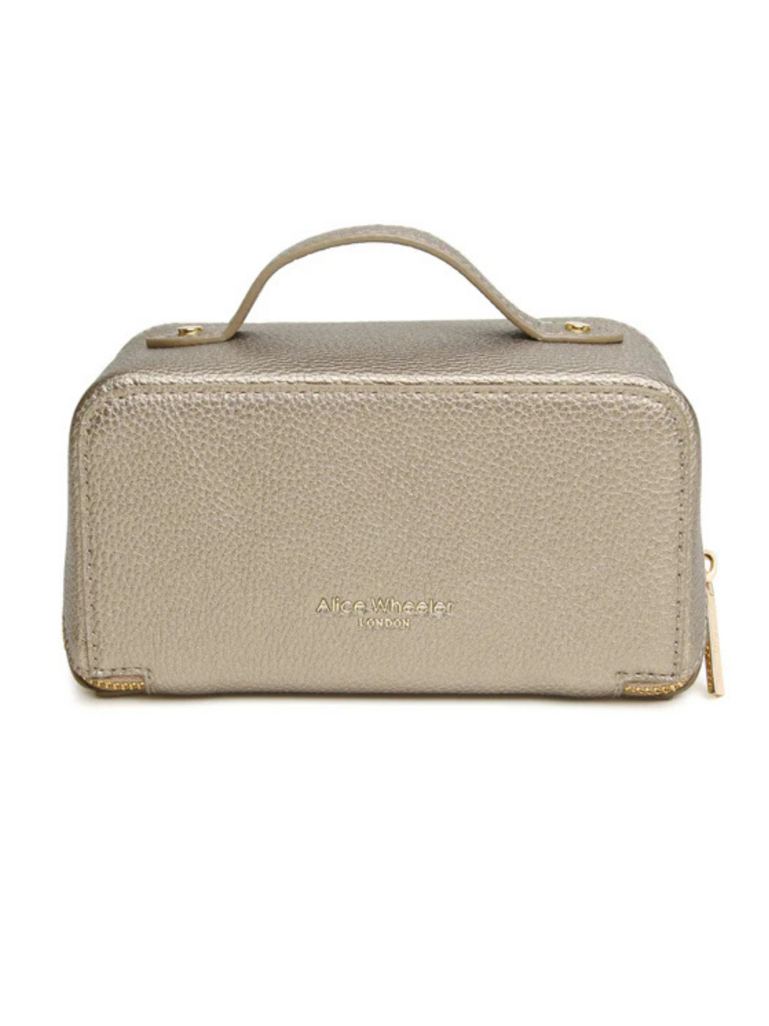Step up your beauty organisation with the Alice Wheeler AW0286 Bronze Train Case S, a compact yet luxurious case designed for travel and everyday elegance. Crafted with a sleek silhouette, this case is finished with a gold-toned metal zip that combines sophistication with durability. Its smart, structured interior opens wide to reveal a fully lined compartment, complete with internal pockets to keep your essentials neatly organised. Perfectly sized for portability, it slips easily into your suitcase, overnight bag or vanity shelf while keeping your must-haves secure and stylish.