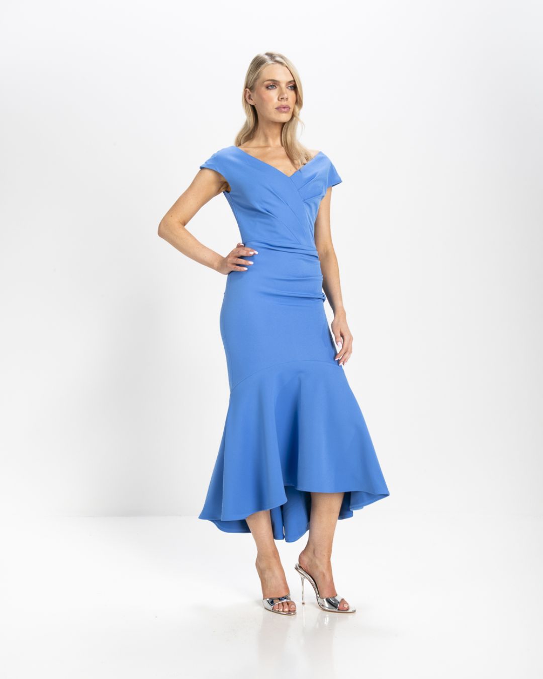 The Mia Fit & Flare dress by British designer Kevan Jon combines classic elegance with a playful silhouette. Perfect for weddings, races, or special events, this style offers a flattering fit that flares gently from the waist for a feminine look.